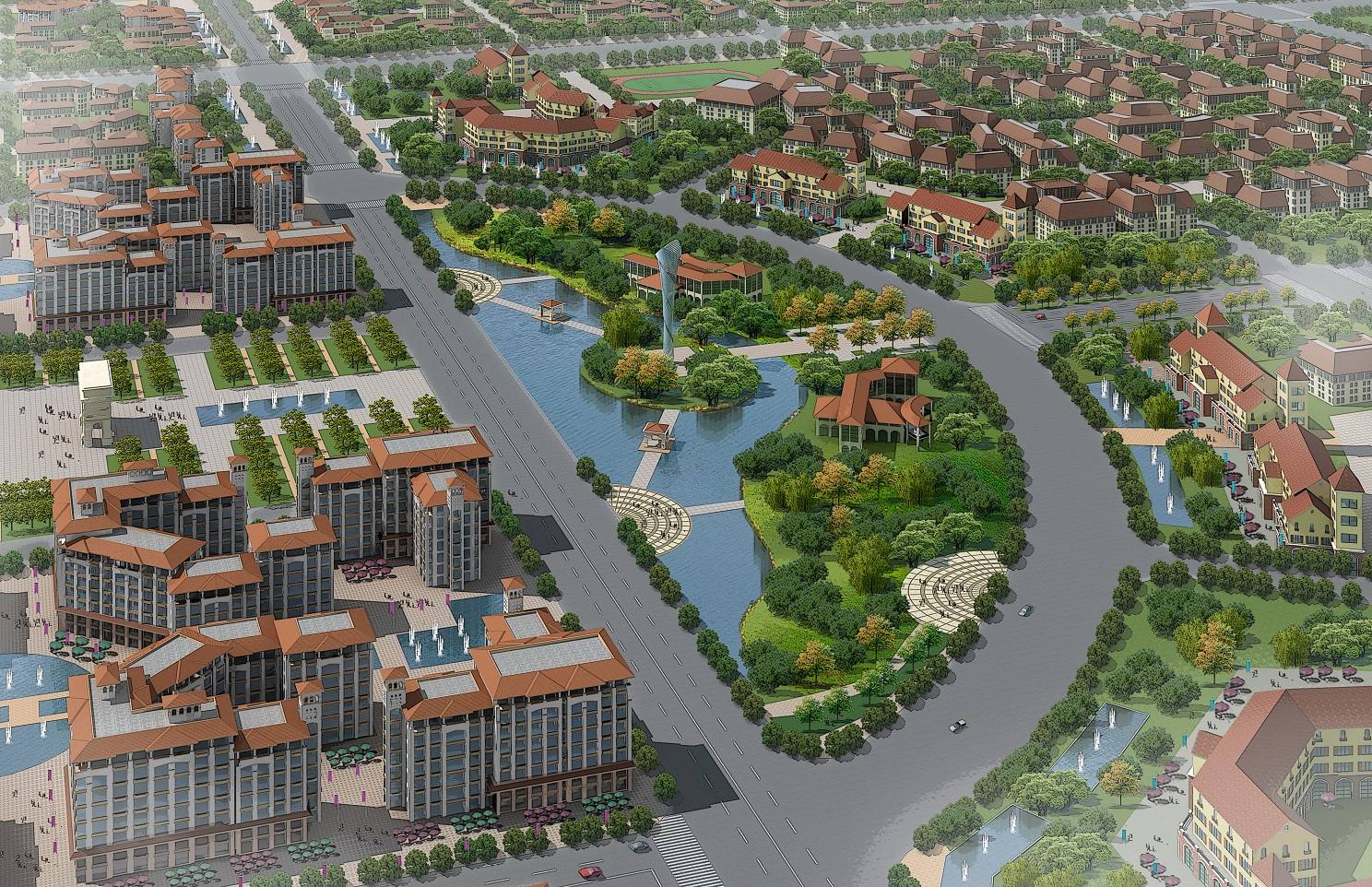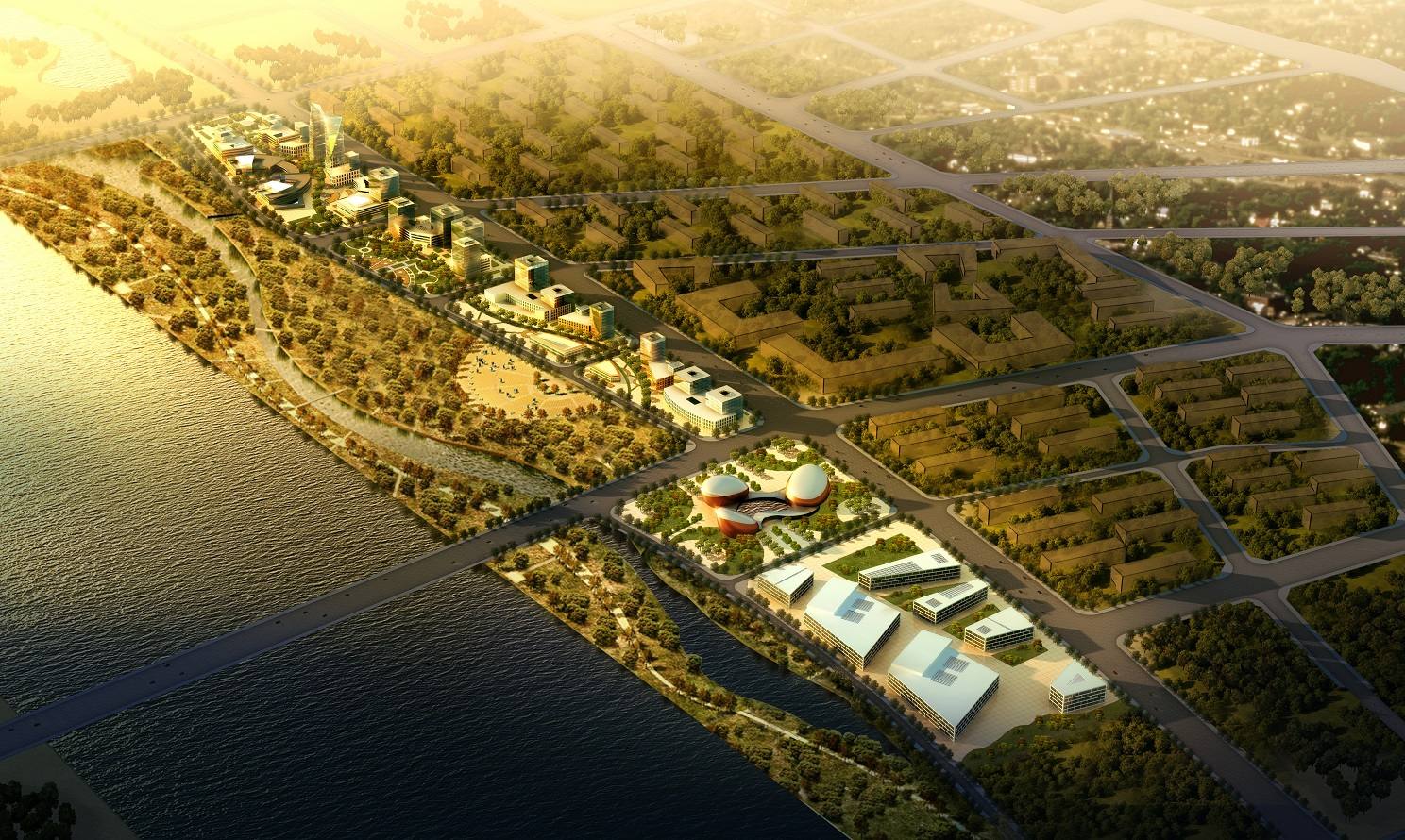 1)濱水核心區(qū) —— 文化休閑中心、拜城的RBD(Recreational Business District)